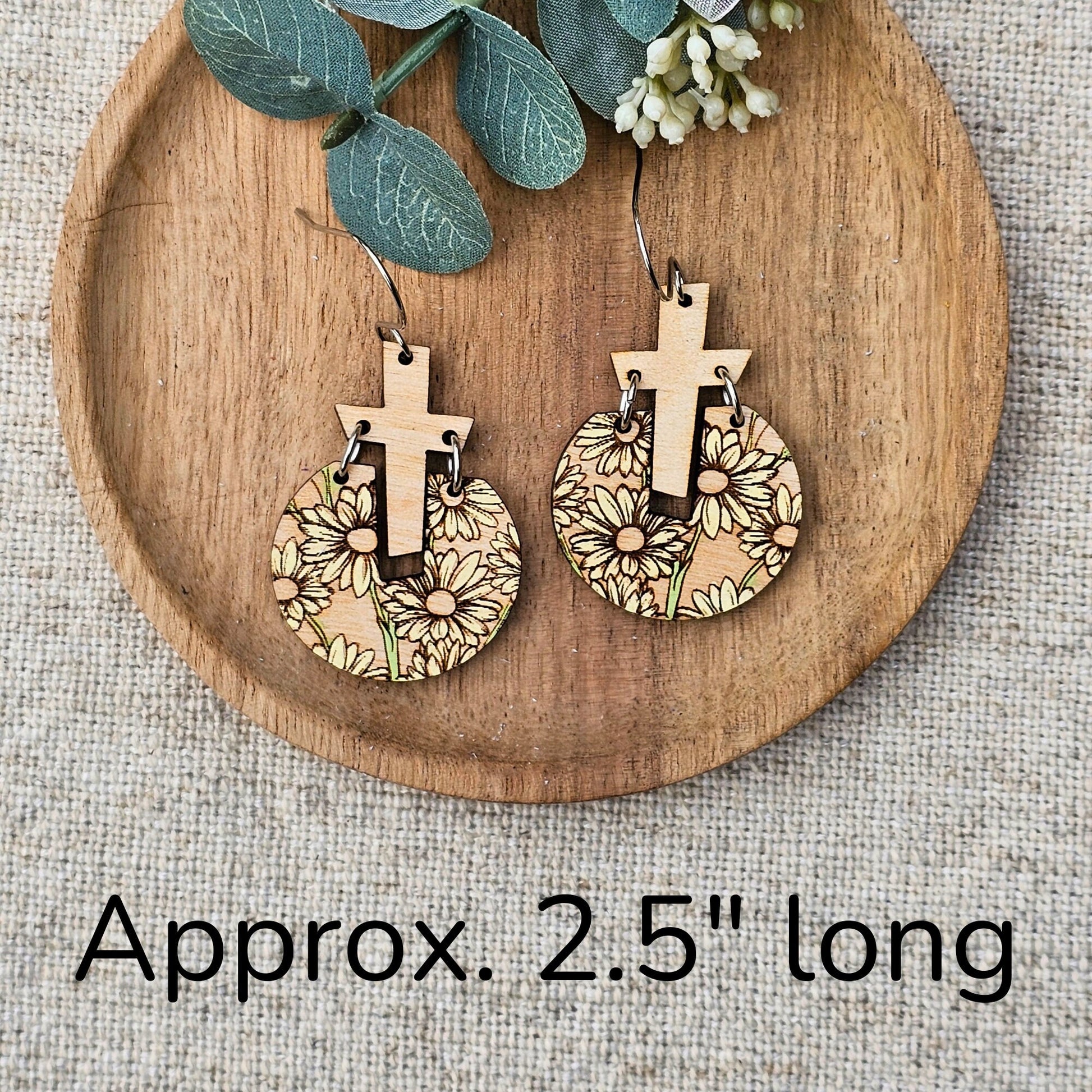 white floral cross earrings wood, Christian gifts for women faith, Mothers day gift, birthday gift for sister, for best friend, baptism gift